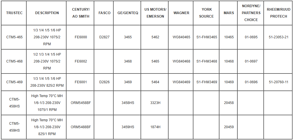 CROSS REFERENCE TRUSTEC MOTOR.pdf| Product | Condenser Fan Motor | Frame | Nema 48 |